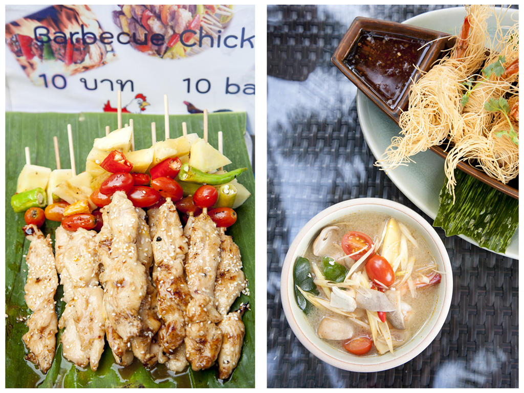 Gastronómicamente he vivido allí momentos originales y muy distintos. Y no lo digo sólo por la cocina que desarrollan, no, sino por los escenarios. Lo mismo he desayunado en la copa de un árbol, que rodeada de elefantes (reclamaban su parte). He almorzado en mercados y puestos callejeros o he disfrutado de suculento buffet en un barco que recorría el río al atardecer. Y para poner la guinda, la cena: bien en uno de los “rooftop” de la ciudad de Bangkok o, si el escenario era playero, un buen pescado a la brasa mirando al mar y pisando arena. Asiático o no, un lujo.