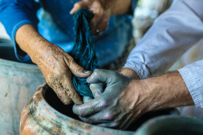 Junto al templo se encuentra una encantadora calle peatonal teñida de índigo, donde se puede encontrar una buena variedad de ropa fabricada localmente con tejidos de este color. El índigo se obtiene a lo largo del río Songkhram, que empieza en Udon y pasa por Sakon Nakhon. El nombre tailandés de la planta de añil es Khram.