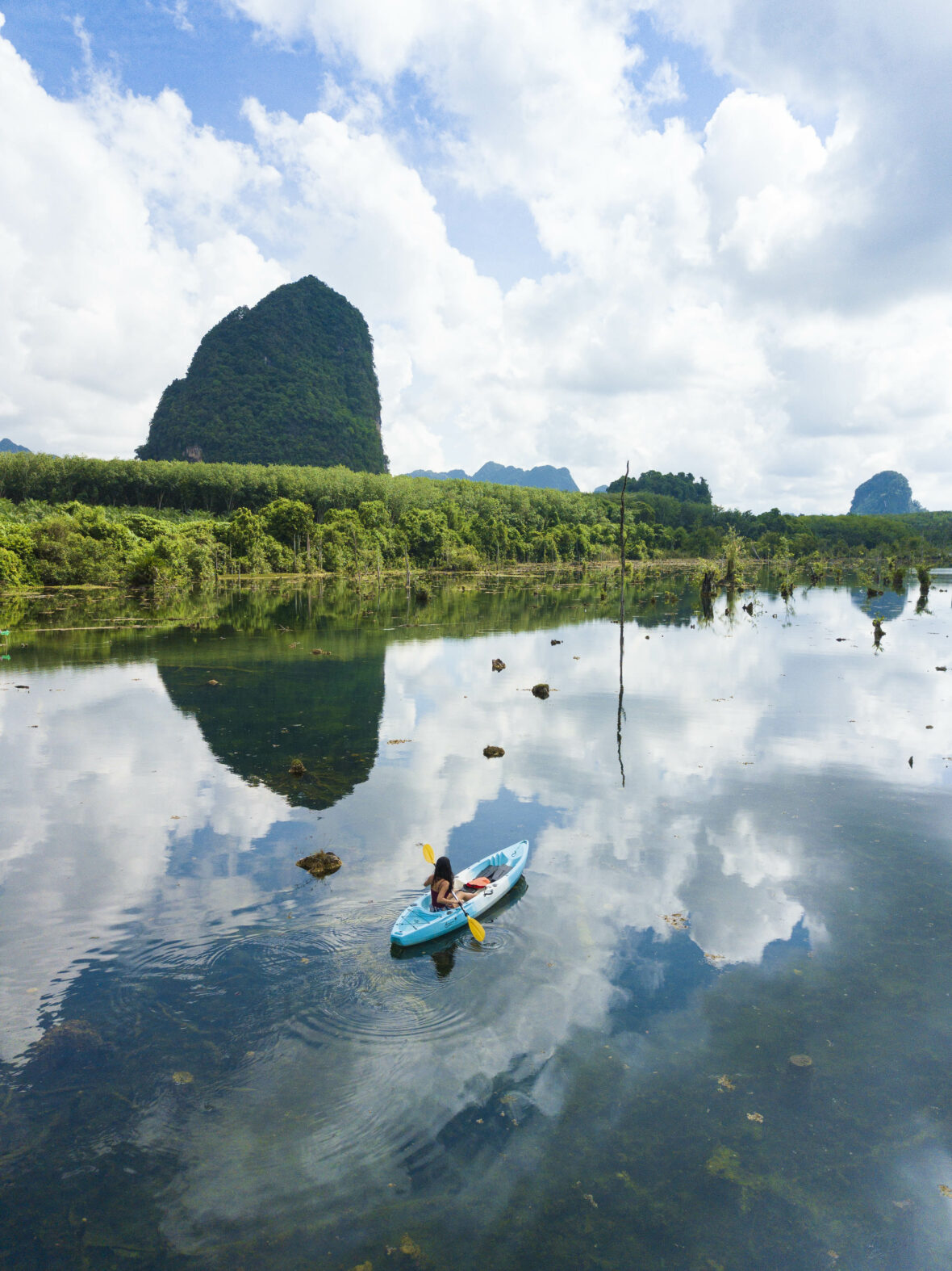 El Parque Nacional Srilanna, una de las joyas de Tailandia, ofrece la oportunidad de emprender un tour en barco para contemplar los impresionantes árboles gigantes de lluvia o monkey pod (Samanea saman). Estos se alzan espléndidos en medio de las aguas verde esmeralda de la presa Mae Ngat Somboon Chon, en Chiang Mai. Los árboles, con más de 100 años de antigüedad, crean una vista espectacular que solo puede apreciarse cuando el nivel del agua es alto.